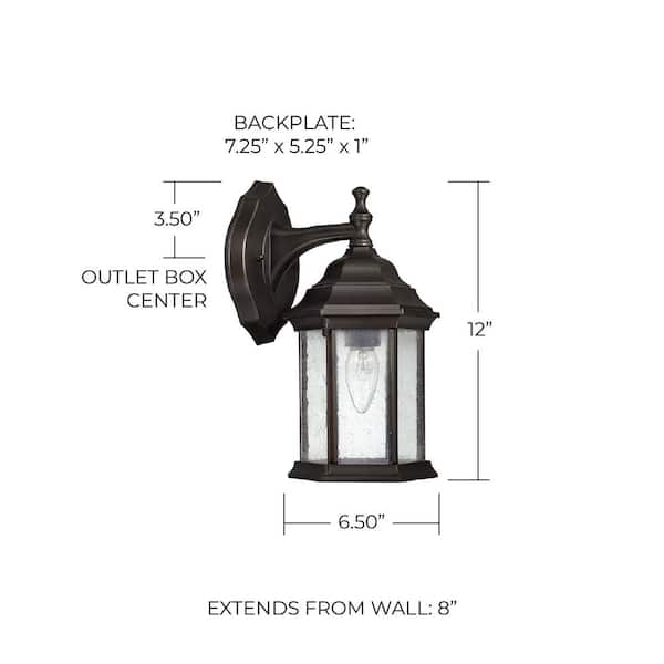 Main Street 12 in. 1-Light Old Bronze Outdoor Hardwired Wall Lantern Sconce with Antiqued Glass with No Bulbs Included