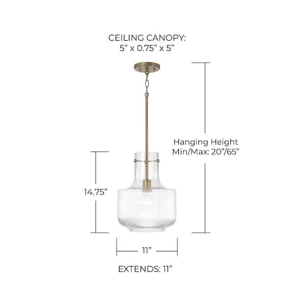Nyla 11 in. W x 15 in. H 1-Light Pendant in Aged Brass with Clear Fluted Glass