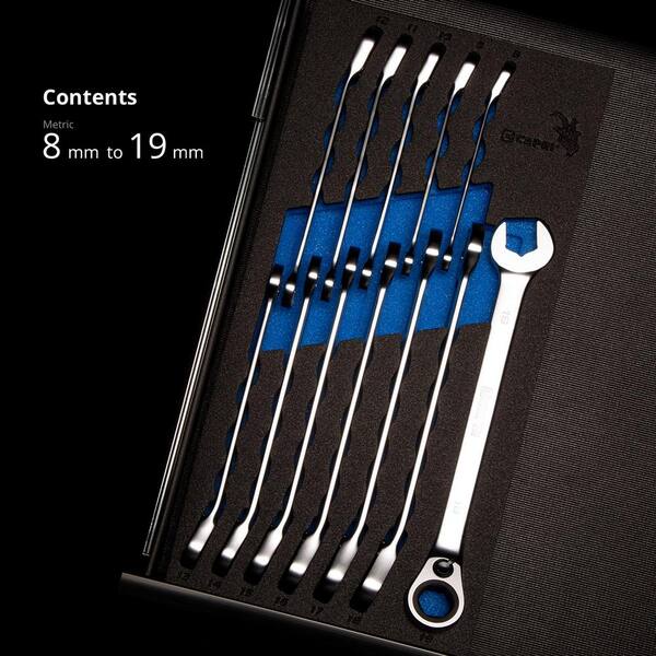 Metric 6-Point Long Pattern Reversible Ratcheting Combination Wrench Set with Mechanic's Tray (12-Piece)