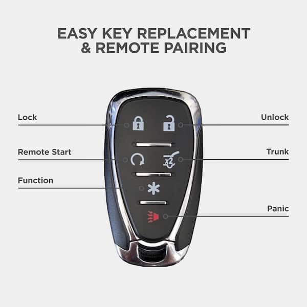 GM Simple Key-6 Button Smart Key with Lock, Unlock, Trunk, Panic, Remote Start, and Function buttons and Programmer