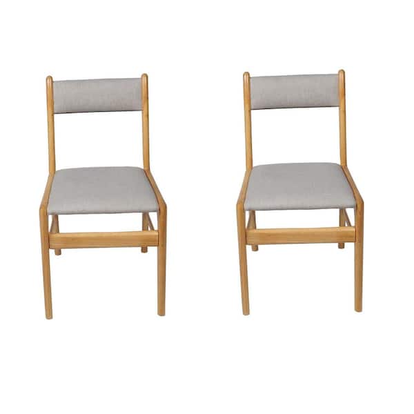 Cara Light Grey Rubber Wood Fabric Dining Chair with Natural Leg (Set of 2)