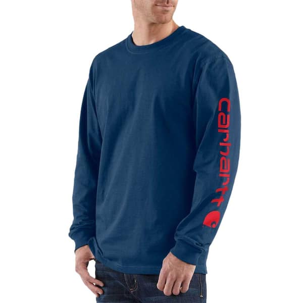 Men's Regular Medium Dark Cobalt Blue/Red Cotton/Polyester Long-Sleeve T-Shirt