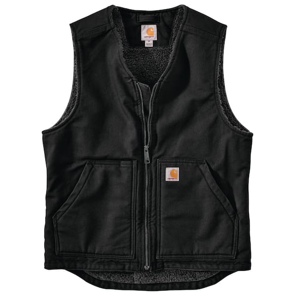 Men's X-Large Tall Black Cotton Relaxed Fit Washed Duck Sherpa-Lined Vest