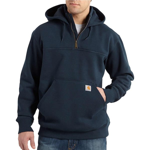 Men's XX-Large New Navy Cotton/Polyester Rain Defender Paxton Heavyweight Hooded Zip Mock Sweatshirt