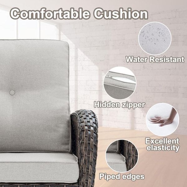 Carlos 1-Person High Back Brown Wicker Outdoor Swivel Rocking Chair Patio Swivel Glider with Beige Cushions