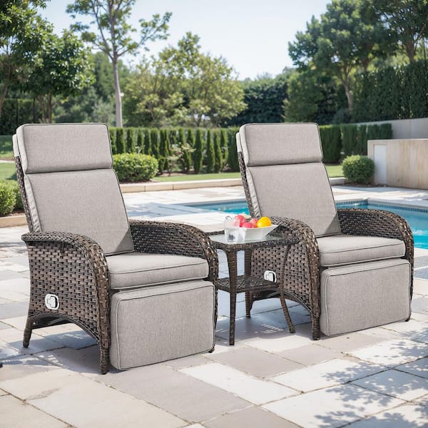 Carlos Brown Wicker 3-Piece Outdoor Chaise Lounge Chair, Patio Adjuestment Recliner Set with Beige Olefin Soft Cushion
