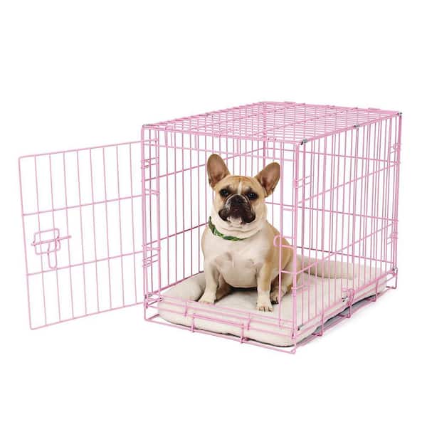 Carlson Secure and Foldable Single Door Wire Dog Crate, Pink - Small