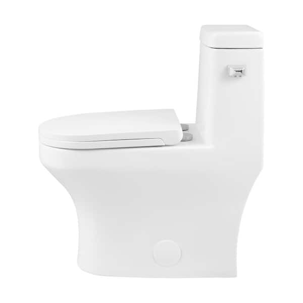 Vezina One-Piece Elongated 12 in. Rough-in 1.28 GPF Right Vortex Single Flush Toilet in Glossy White