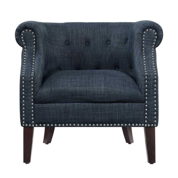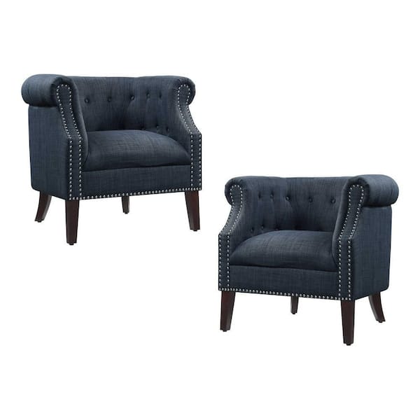 Carmen Indigo Textured Upholstery Tufted Barrel Back Accent Chair (Set of 2)