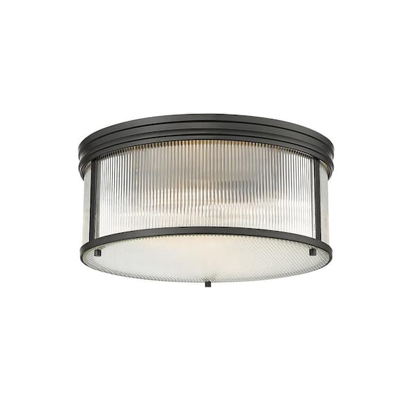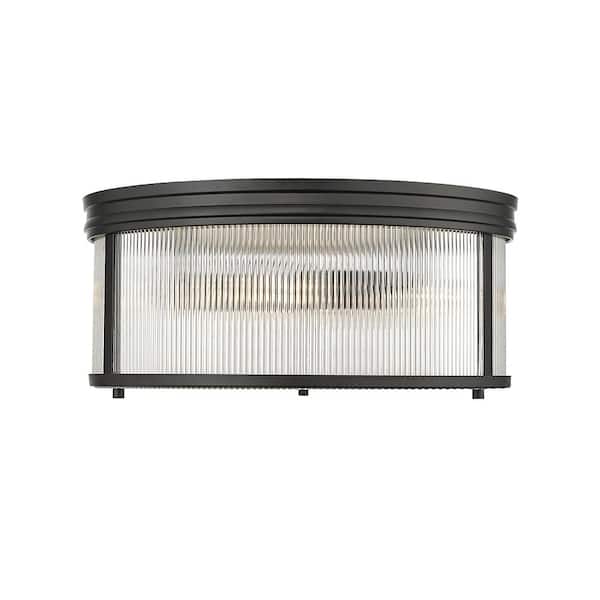 Carnaby 18 in. Matte Black Integrated LED Flush Mount with Clear Ribbed Glass Shade (1-Pack)