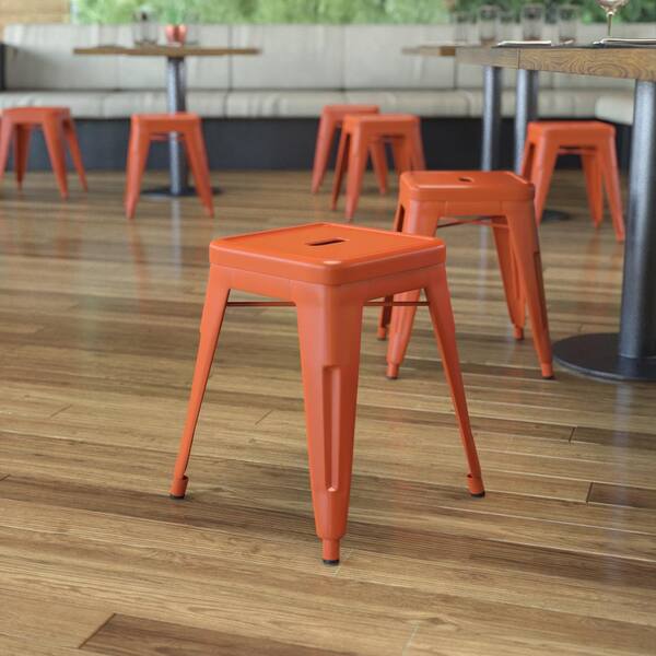 18 in. Orange Backless Metal Short 16 in.-23 in. Bar Stool with Metal Seat (Set of 4)
