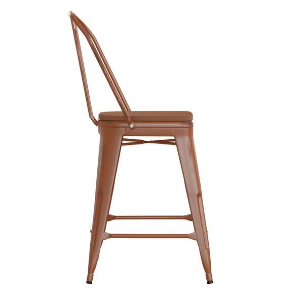 24 in. Orange/Teak Metal Outdoor Bar Stool