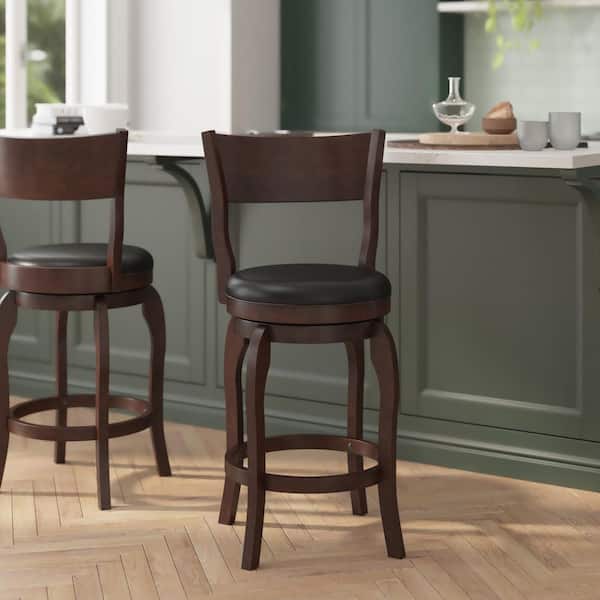 25 in. Espresso/Black Full Wood Bar Stool with Leather/Faux Leather Seat