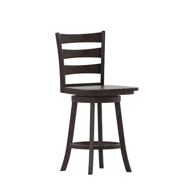 25 in. Gray Wash Walnut Full Wood Bar Stool with Wood Seat