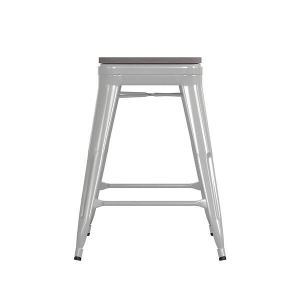 25 in. White/Gray Metal Outdoor Bar Stool