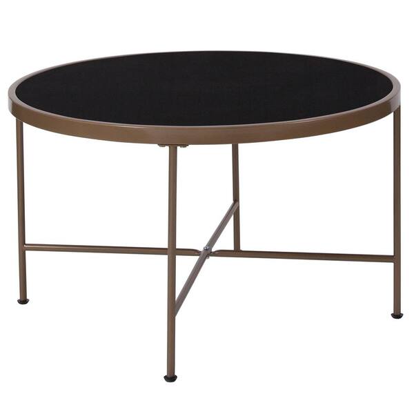 30 in. Black/Matte Gold Medium Round Glass Coffee Table