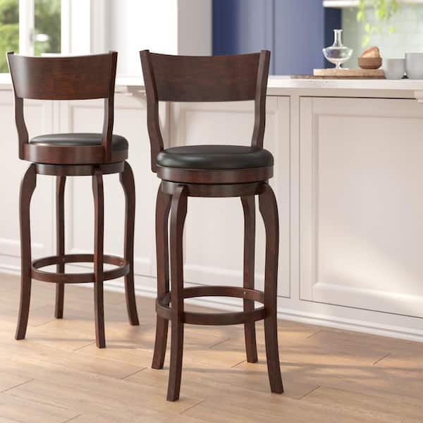 30 in. Espresso/Black Full Wood Bar Stool with Leather/Faux Leather Seat