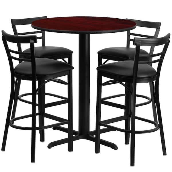 5-Piece Mahogany Top/Black Vinyl Seat Table and Chair Set