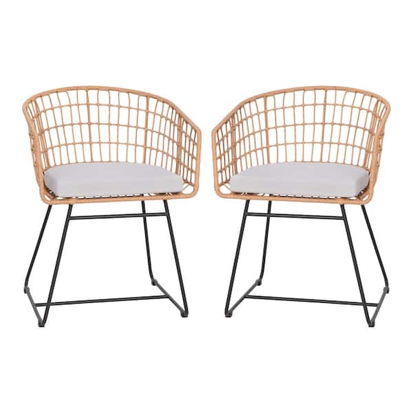 Brown Wicker/Rattan Outdoor Lounge Chair in Gray Set of 2