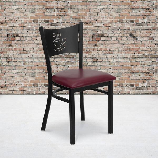 Burgundy Vinyl Seat/Black Metal Frame Restaurant Chairs (Set of 2)