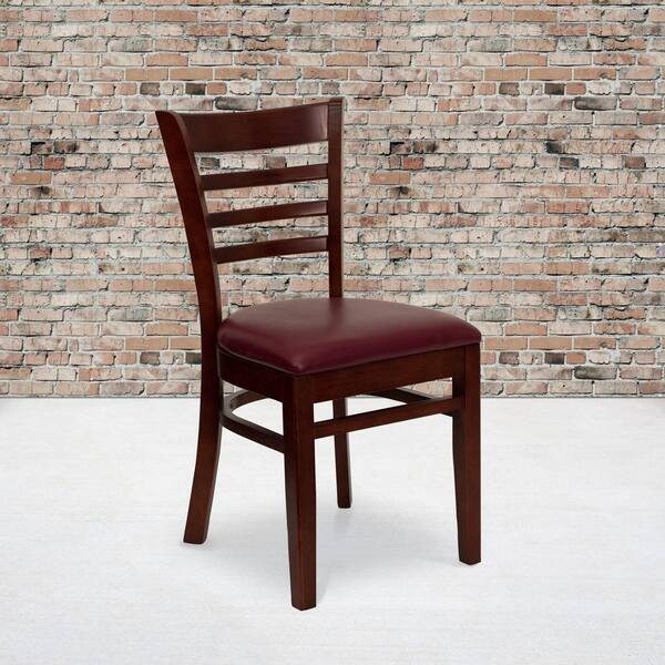 Burgundy Vinyl Seat/Mahogany Wood Frame Restaurant Chairs (Set of 2)