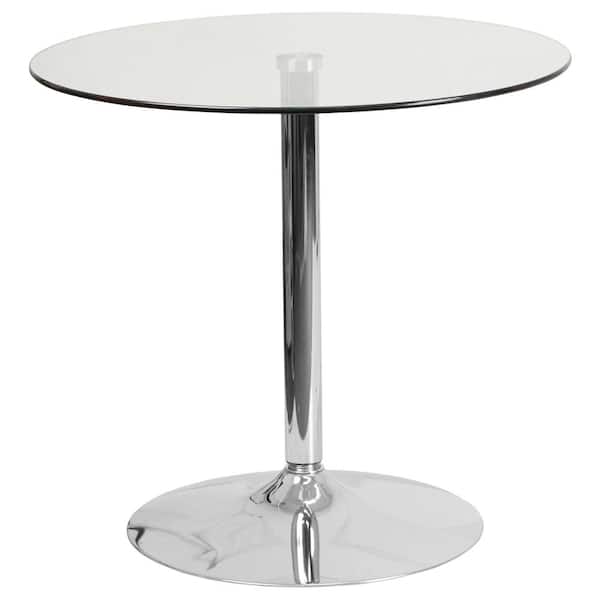 • Elegant clear tempered glass tabletop with a round, chrome base