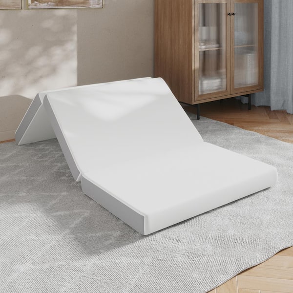 • Tri-fold four-inch cooling memory foam twin mattress in a box