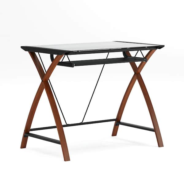 Jude 39.5 in. Rectangular Clear/Cherry Computer Desk with Keyboard Tray