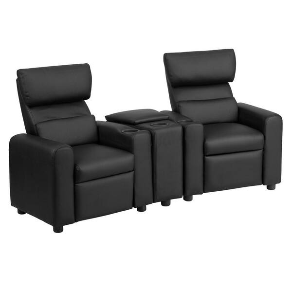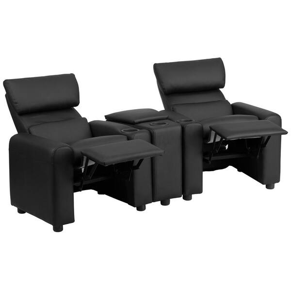 Kid's Black Leather Reclining Theater Seating with Storage Console