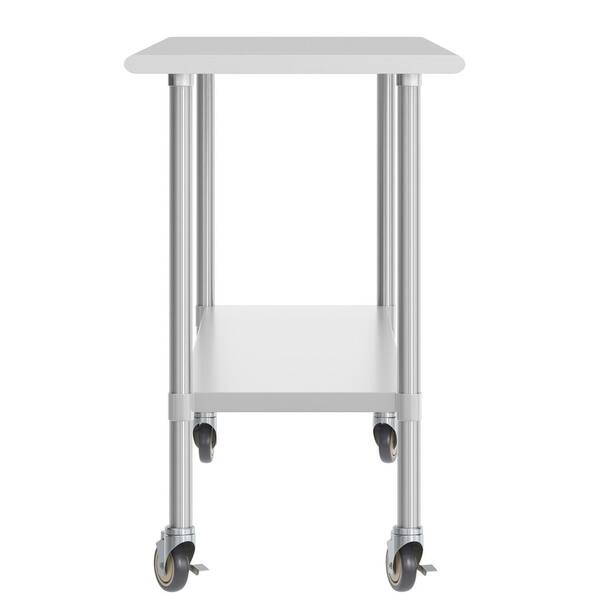 Reese Stainless Steel Metal 72.0 in. Portable Kitchen Prep Table with Galvanized Steel Undershelf, 4 Casters, 2 Locking
