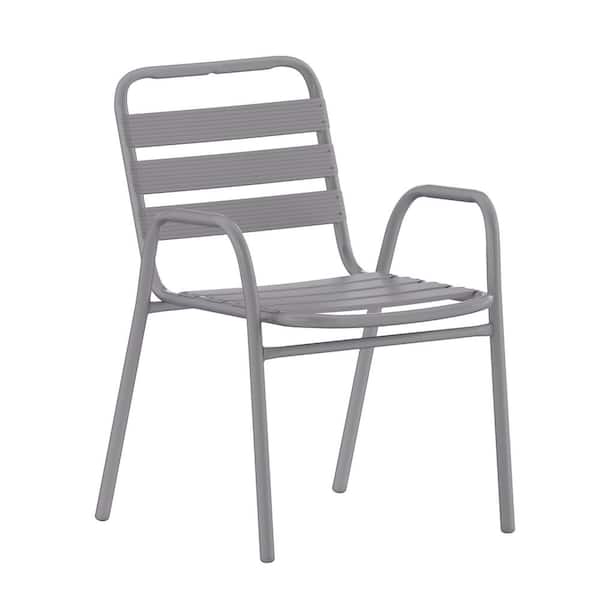 Silver Aluminum Outdoor Dining Chair in Silver
