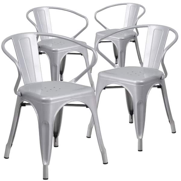 Stackable Metal Outdoor Dining Chair in Silver (Set of 4)