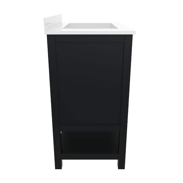 Vega 30 in. Black Bathroom Vanity with Sink Combo, Storage Cabinet, Open Shelf, White Carrara Marble Finish Countertop