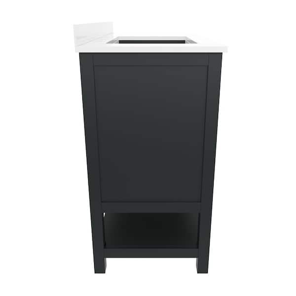 Vega 42 in. Black Bathroom Vanity with Sink, Cabinet, Open Shelf, 3 Drawers, White Faux Carrera Marble Stone Countertop