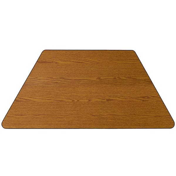 Wren Oak 29 in. W x 57 in. L Trapezoid Thermal Laminate Activity Table - Standard Height Adjustable Legs