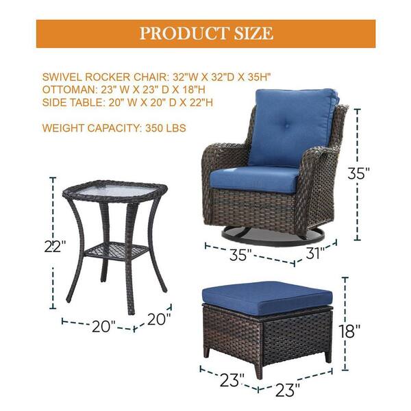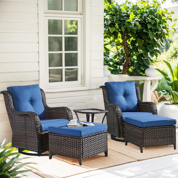 Carolina Brown 5-Piece Wicker Patio Conversation Set with Blue Cuhsions