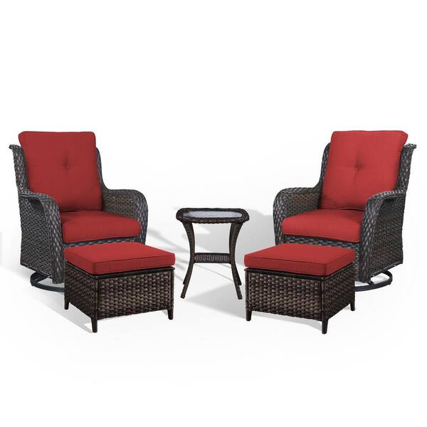 Carolina Brown 5-Piece Wicker Patio Conversation Set with Red Cushions