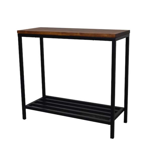 Ryan 34 in. Black/Chestnut Standard Rectangle Wood Console Table with Storage