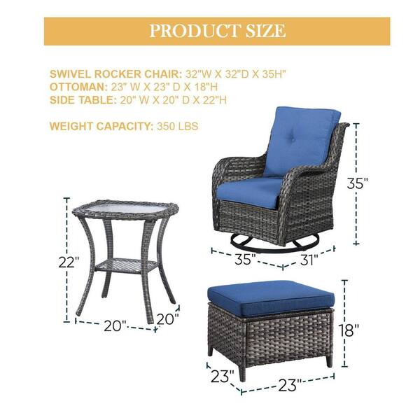 Carolina Gray 5-Piece Wicker Patio Conversation Set with Blue Cushions