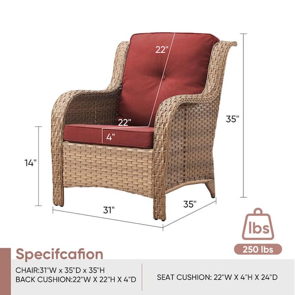 Carolina Yellow Wicker Outdoor Patio Lounge Chair with Red Thick Deep Cushions (2-Pack)