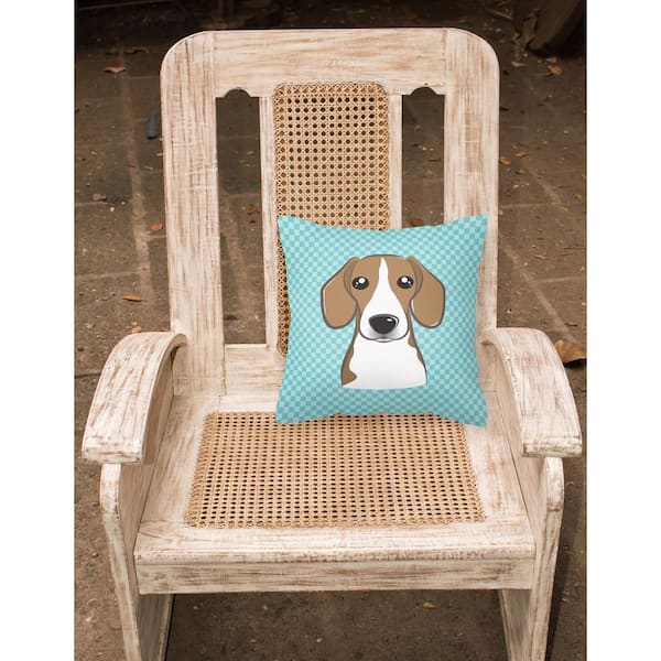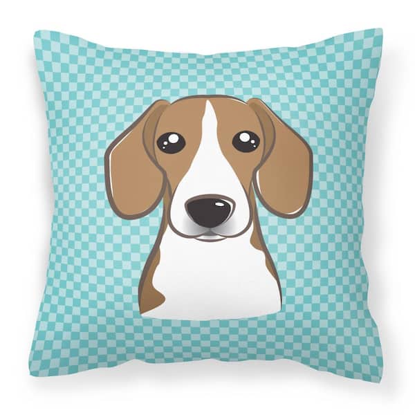 14 in. x 14 in. Multi-Color Outdoor Lumbar Throw Pillow Checkerboard Blue Beagle Canvas