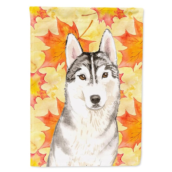 28 in. x 40 in. Polyester Fall Leaves Siberian Husky Flag Canvas House Size 2-Sided Heavyweight