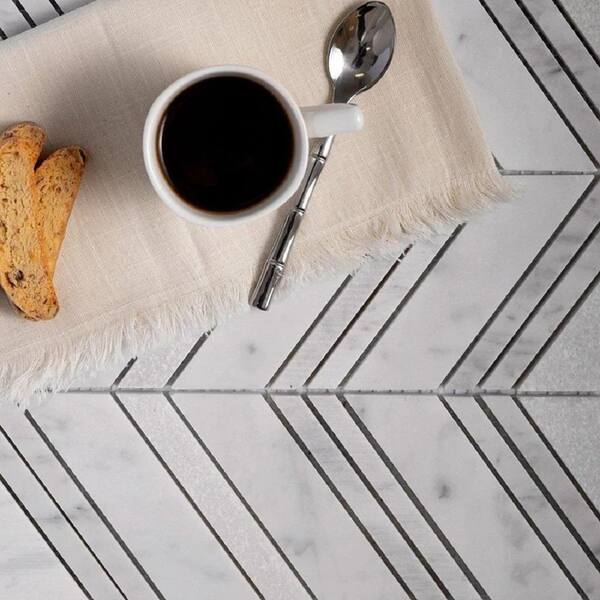 Carrara Chevron Grey 4 in. x 5 in. Marble Floor and Wall Mosaic Tile Sample(0.13 sq.ft./Piece)