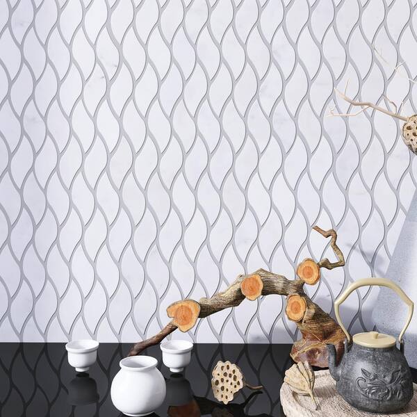 Carrara White 11.23 in. x 9.85 Geometric Polished Marble Mosaic Tile Sample