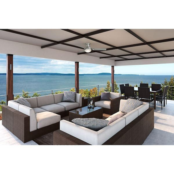 Verse 44 in. LED Indoor/Outdoor Satin Nickel Ceiling Fan with Light Kit and Universal Remote