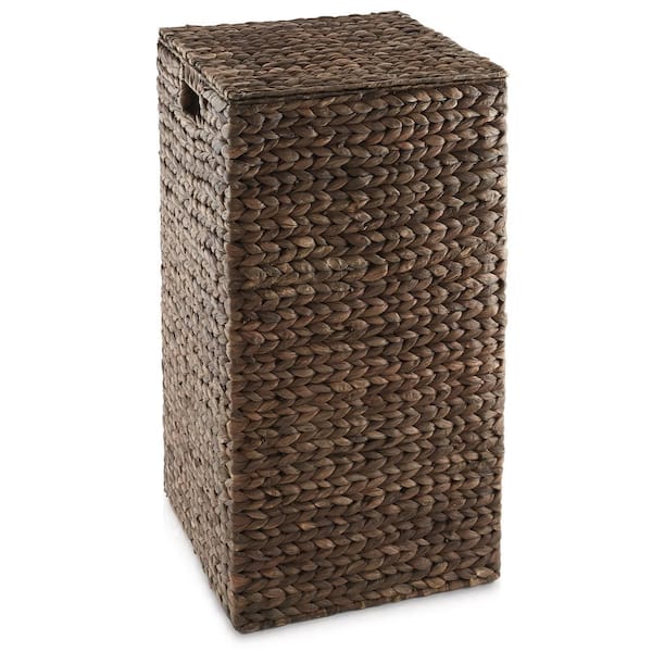 Brown Espresso 14.25 in. x 27 in. Wicker Water Hyacinth Decorative Basket Square Laundry Hamper with Lid and Liner