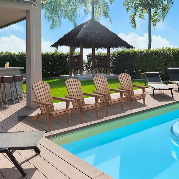 Dark Brown Wood Espresso Wooden Folding Adirondack Chairs (Set of 4)