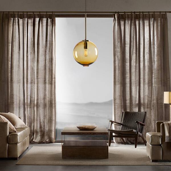 Zurich 10 in. W x 19 in. H 1-Light Brass Hand Blown Glass Pendant Light with Amber Glass Shade