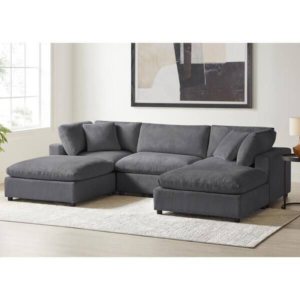 Casella 120 in. Square Arm 5-Piece Corduroy Fabric Modular Chofa Sectional Sofa in Charcoal