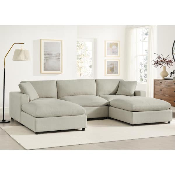 Casella 120 in. Square Arm 5-Piece Polyester Fabric Modular Chofa Sectional in Beige Fabric